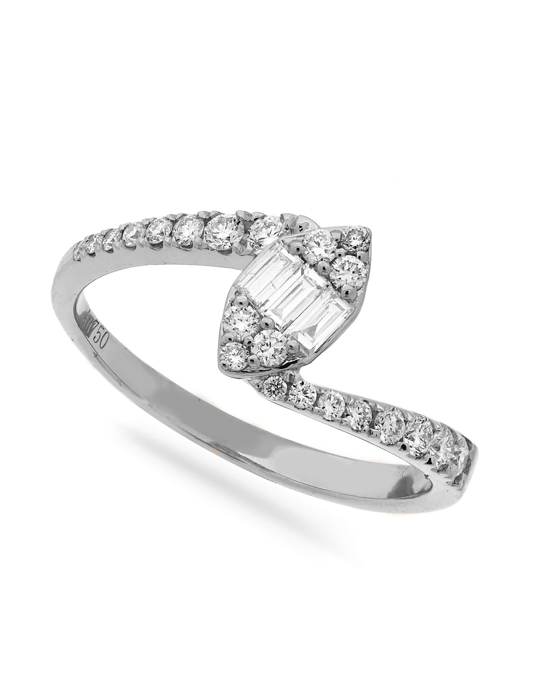 長方形鑽石與圓鑽巧妙拼接出馬眼造型,展現獨特光彩。戒身交錯連接,線條流暢,盡顯優雅格調。無論是日常佩戴,還是作為婚禮珠寶,都能成為吸睛亮點。