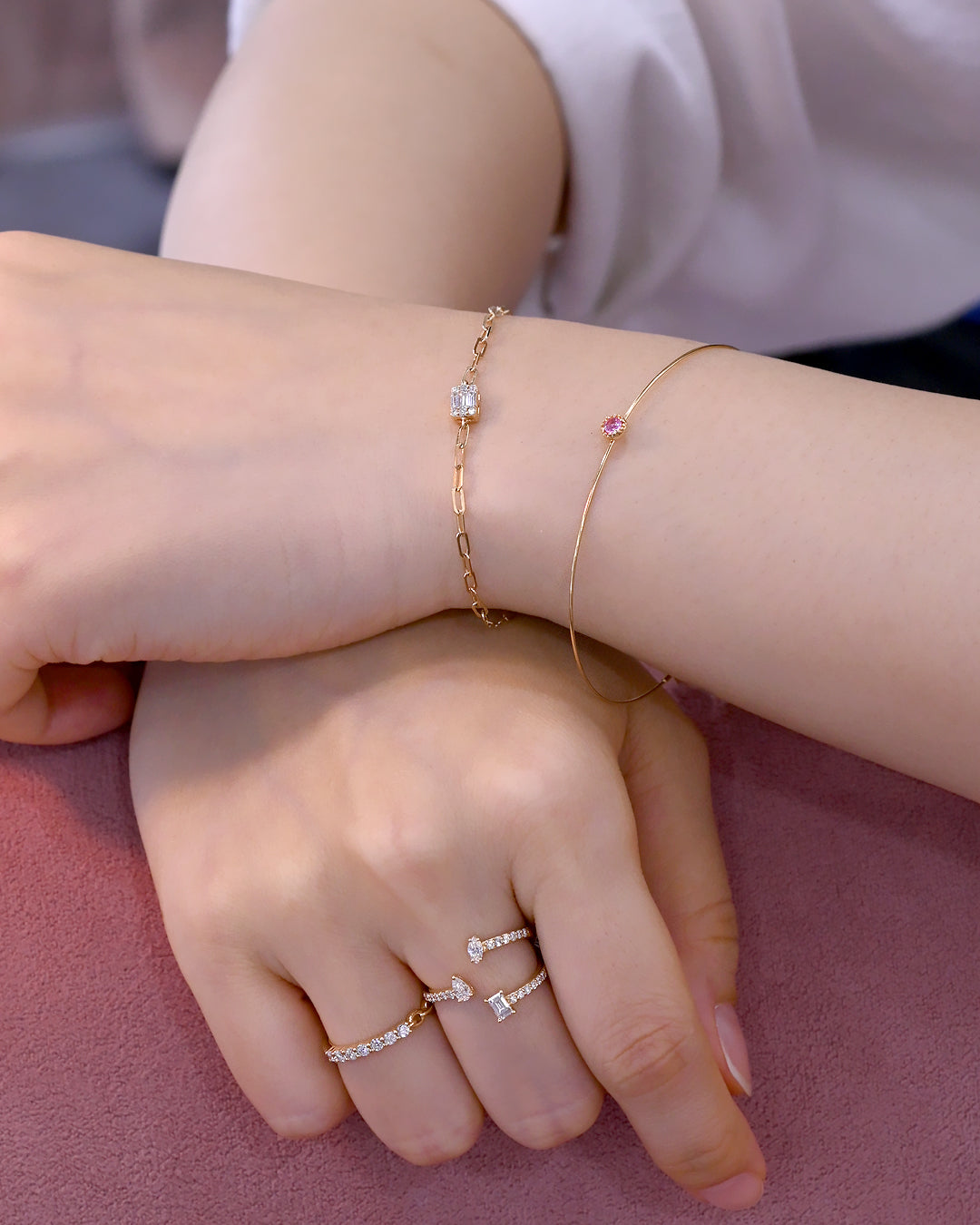 別具一格的paperclip手鏈,搭配baguette鑽石,在動靜之間搖曳著個人魅力