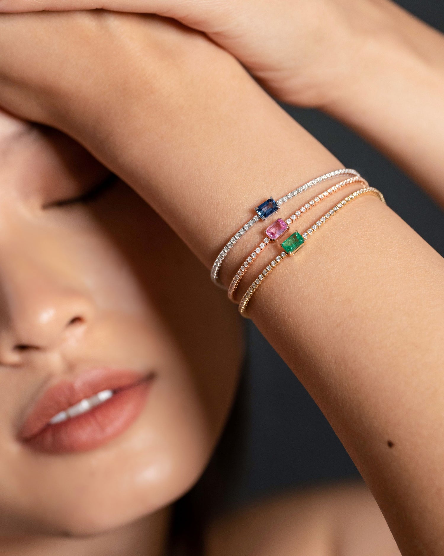 經典 Tennis 手鍊加上個性化天然彩寶,除了展現 Tennis 整圈閃亮的魅力,且融合了淨白鑽石與多彩寶石的混合搭配!
