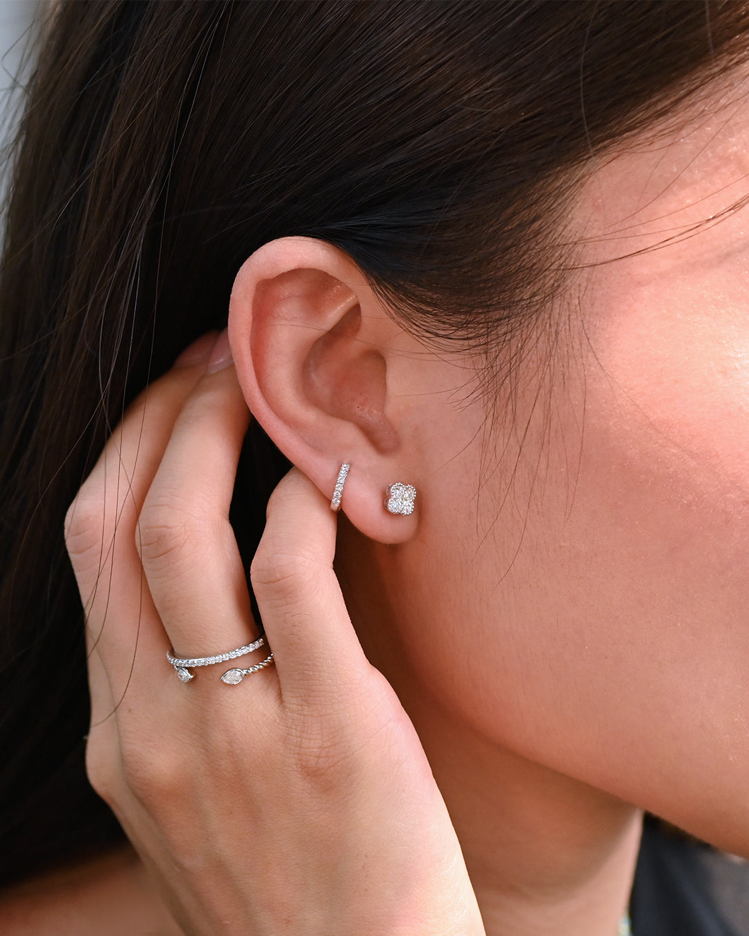 摩登耳環加入你的珠寶收藏,打造魅力造型。微鑲白色石粒讓它能更好地點綴你的日常搭配。