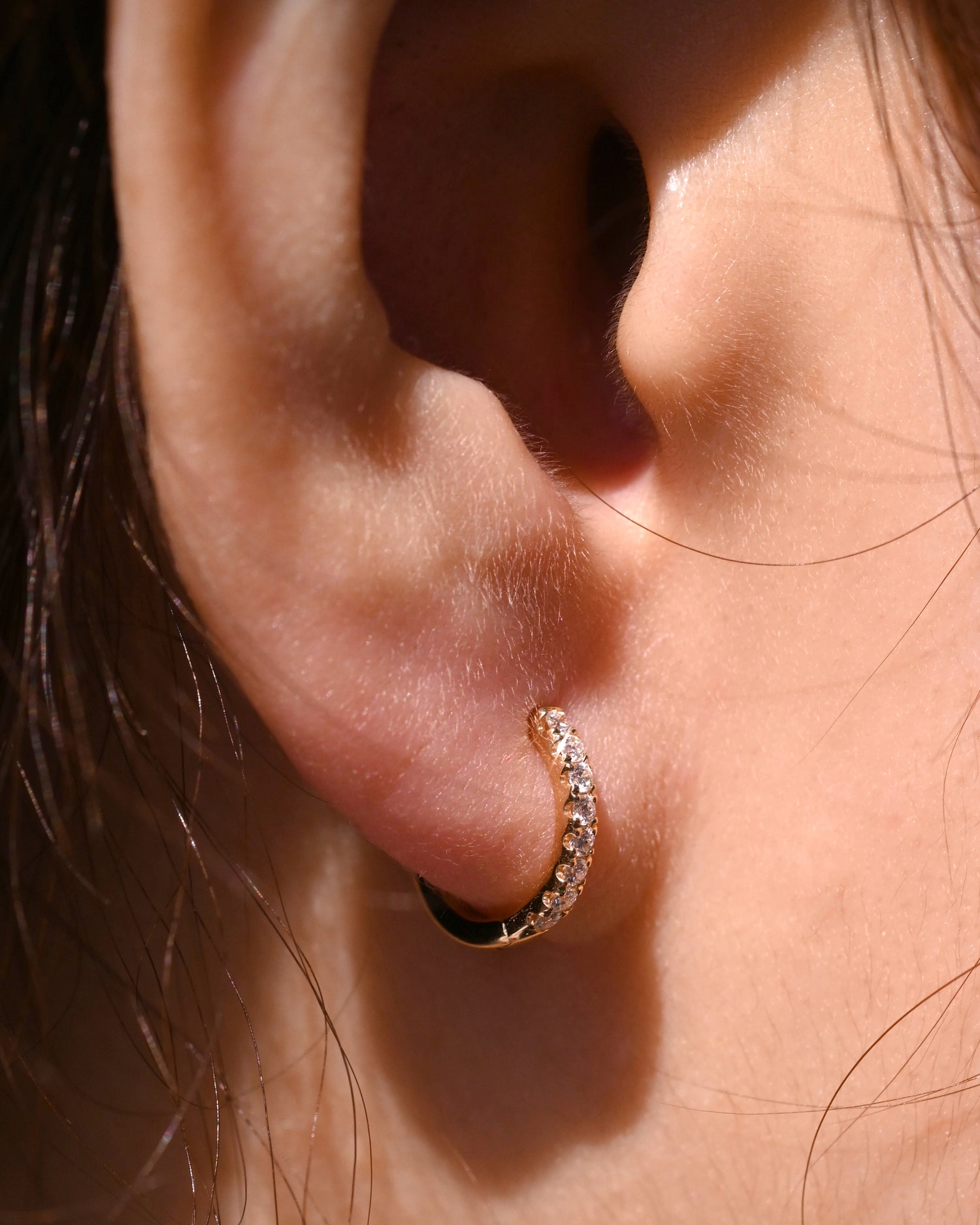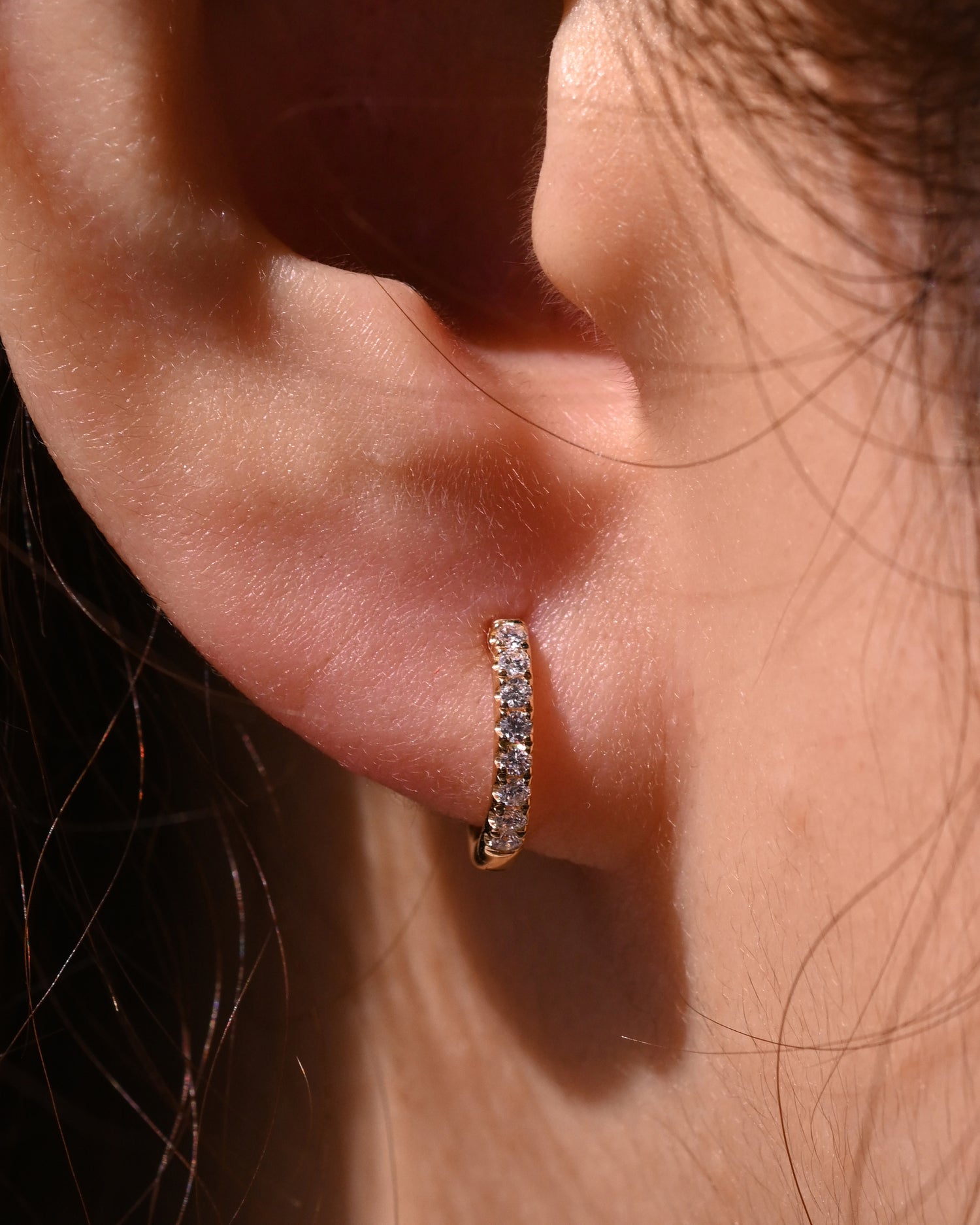 經典半圈C型耳環,四爪鑲嵌側面可看出圓鑽的獨特切面!