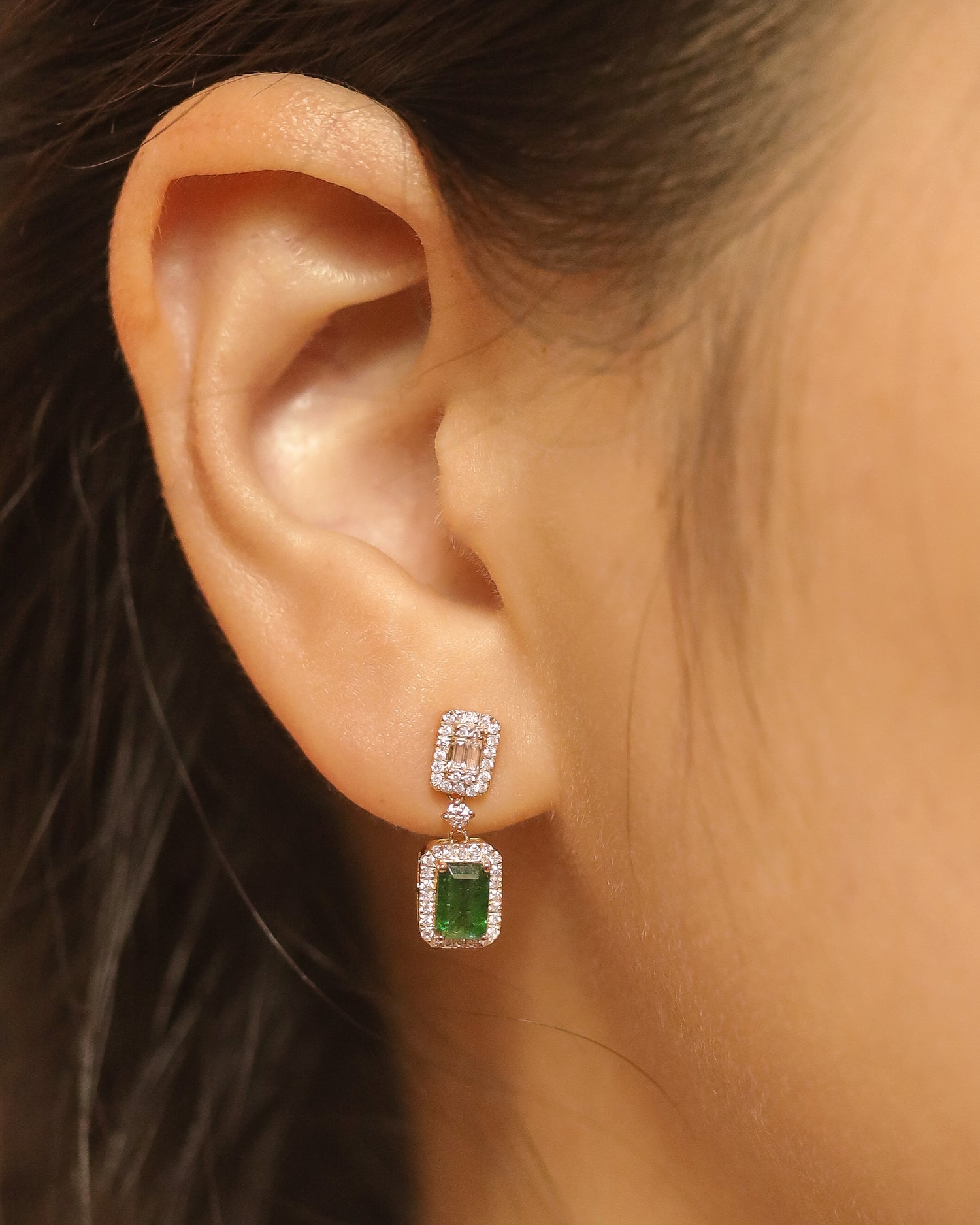 祖母綠切割天然寶石耳環,伴隨著日常配搭可營造出高貴或個性的百變風格