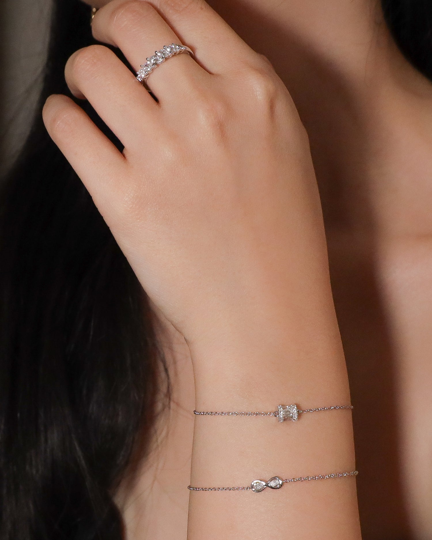 璀璨鑽石搭配俐落的直線方形設計,展現女性的獨立魅力