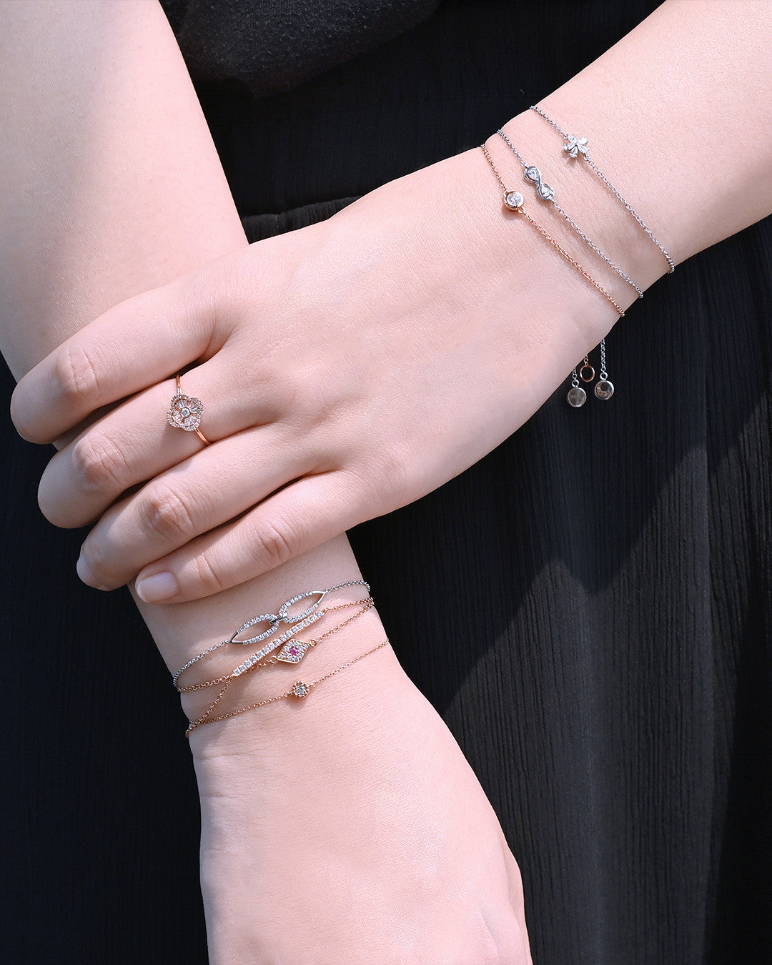 重新詮釋經典鑽石手鏈,以包鑲寶石為特色,與肌膚相互映襯,更顯閃耀動人。