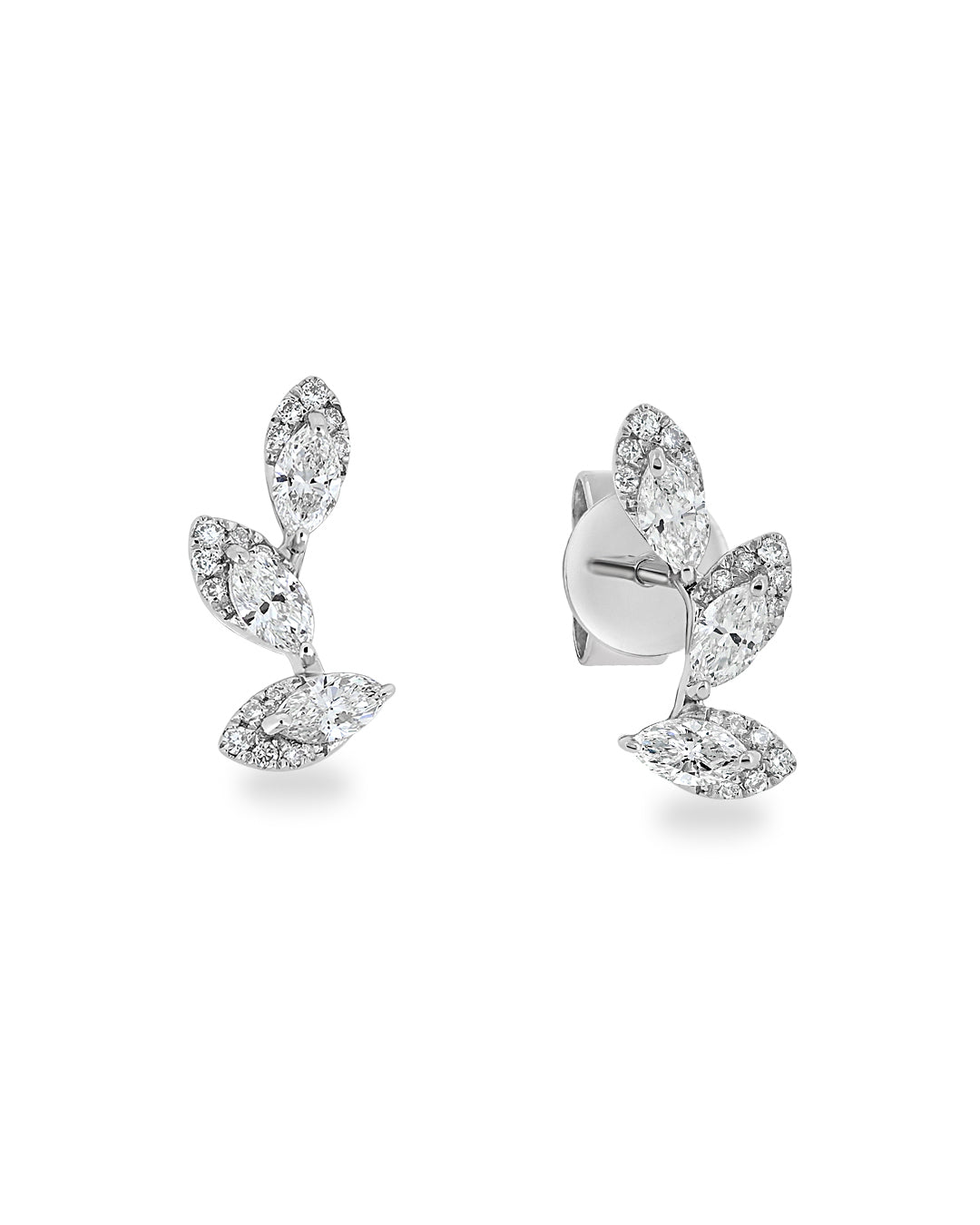 合式切割鑽石為這對日常款耳環添加迷人光芒。馬眼鑽石與圓鑽的搭配,在耳垂下閃閃發光