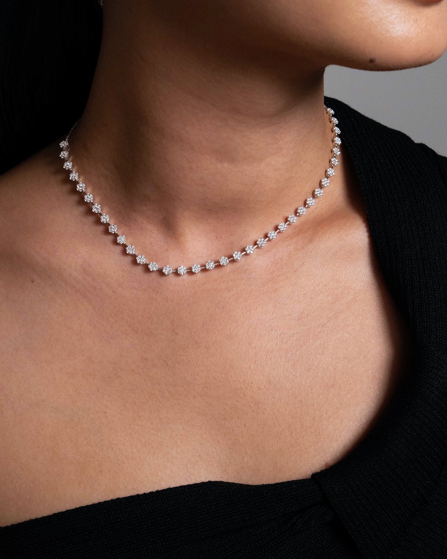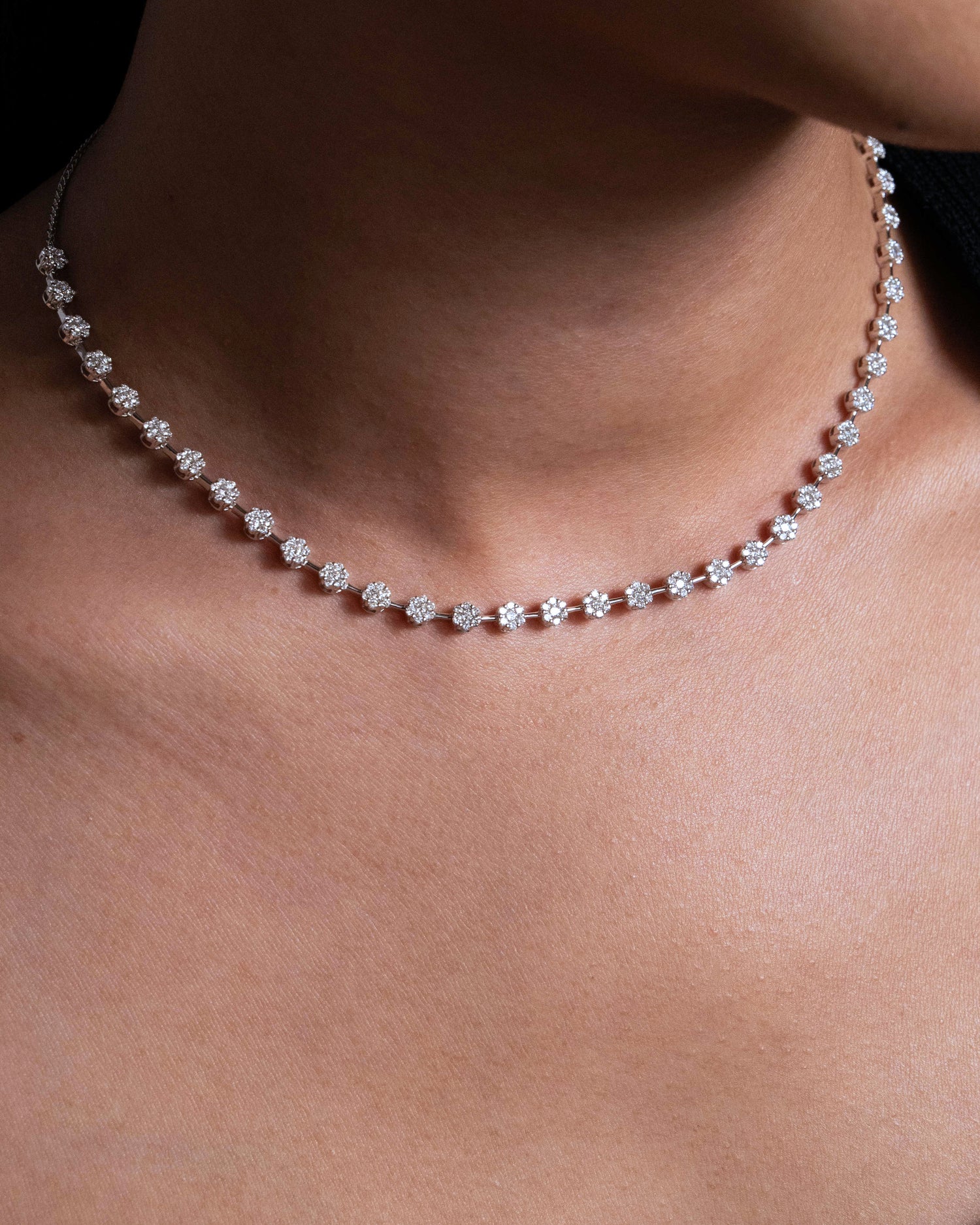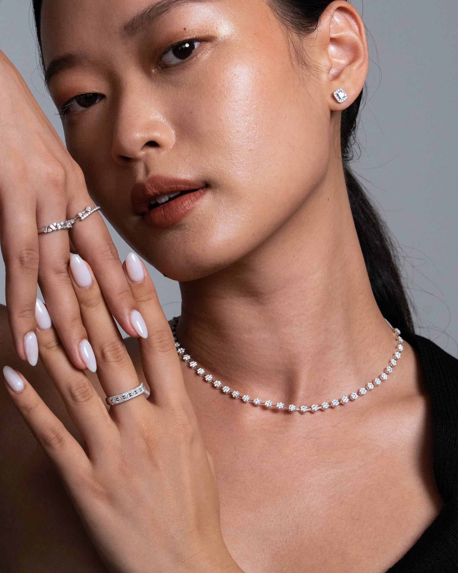 竹節鏈條作為基底,飽滿的圓形鑽石間隔排列,打破傳統網球鏈設計,帶點小俏皮的現代感衝擊而來