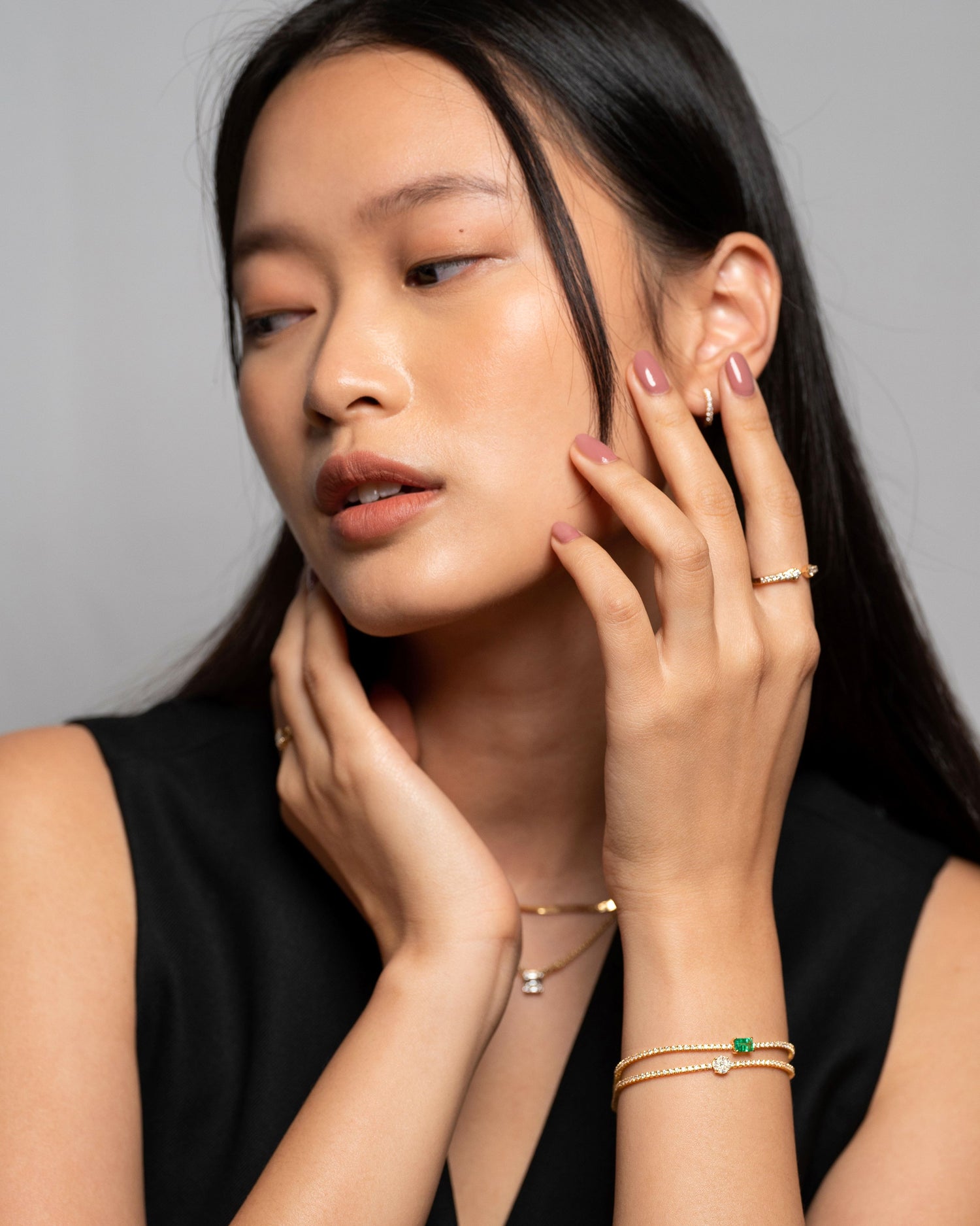 經典 Tennis 手鍊加上由不同切割的鑽石組成的圓餅鑽石,除了展現 Tennis 整圈閃亮的魅力,且有重點呈現!