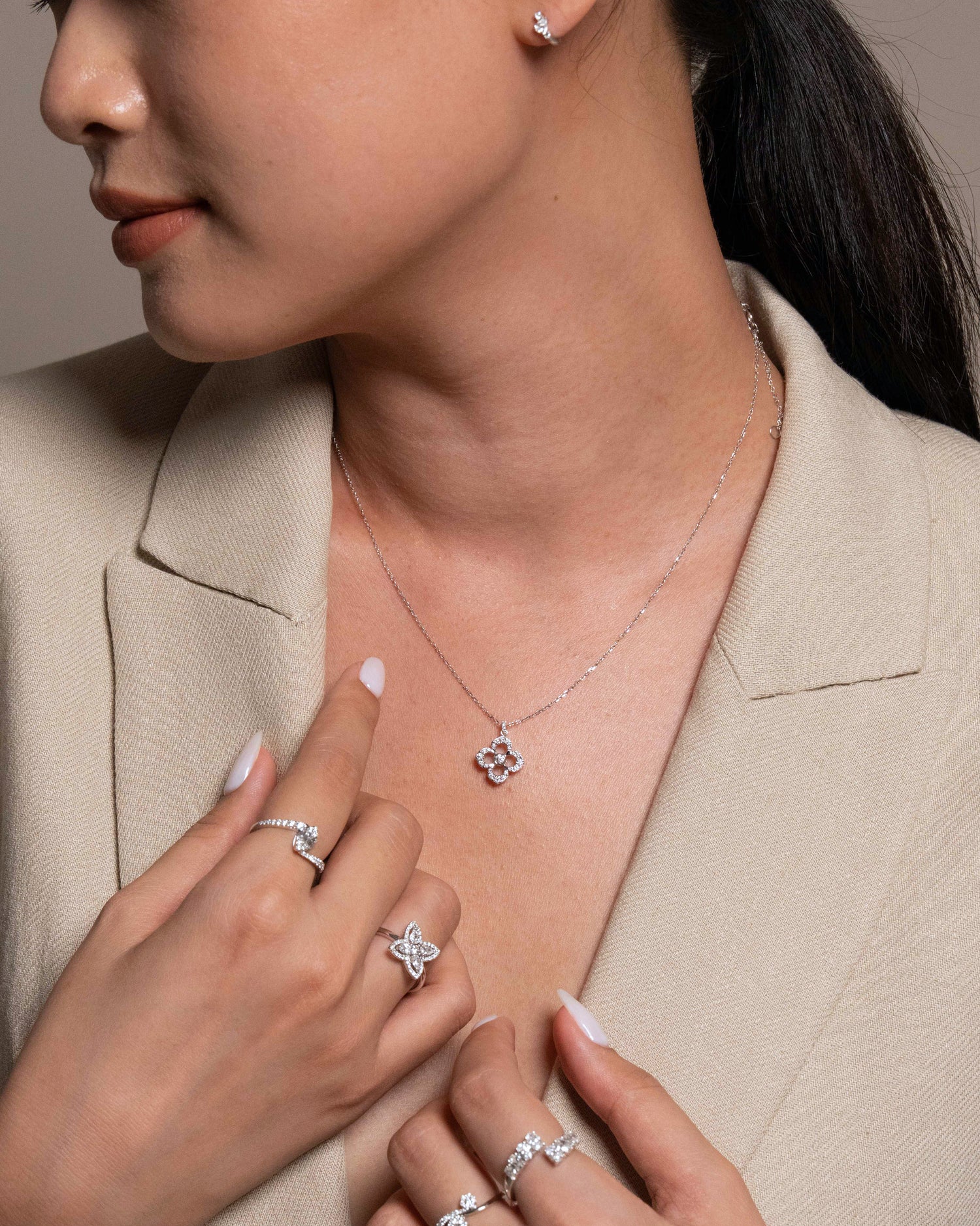 鏤空設計的四葉花更具輕盈感,且生動立體,完美展現工藝之細膩和優雅的風格